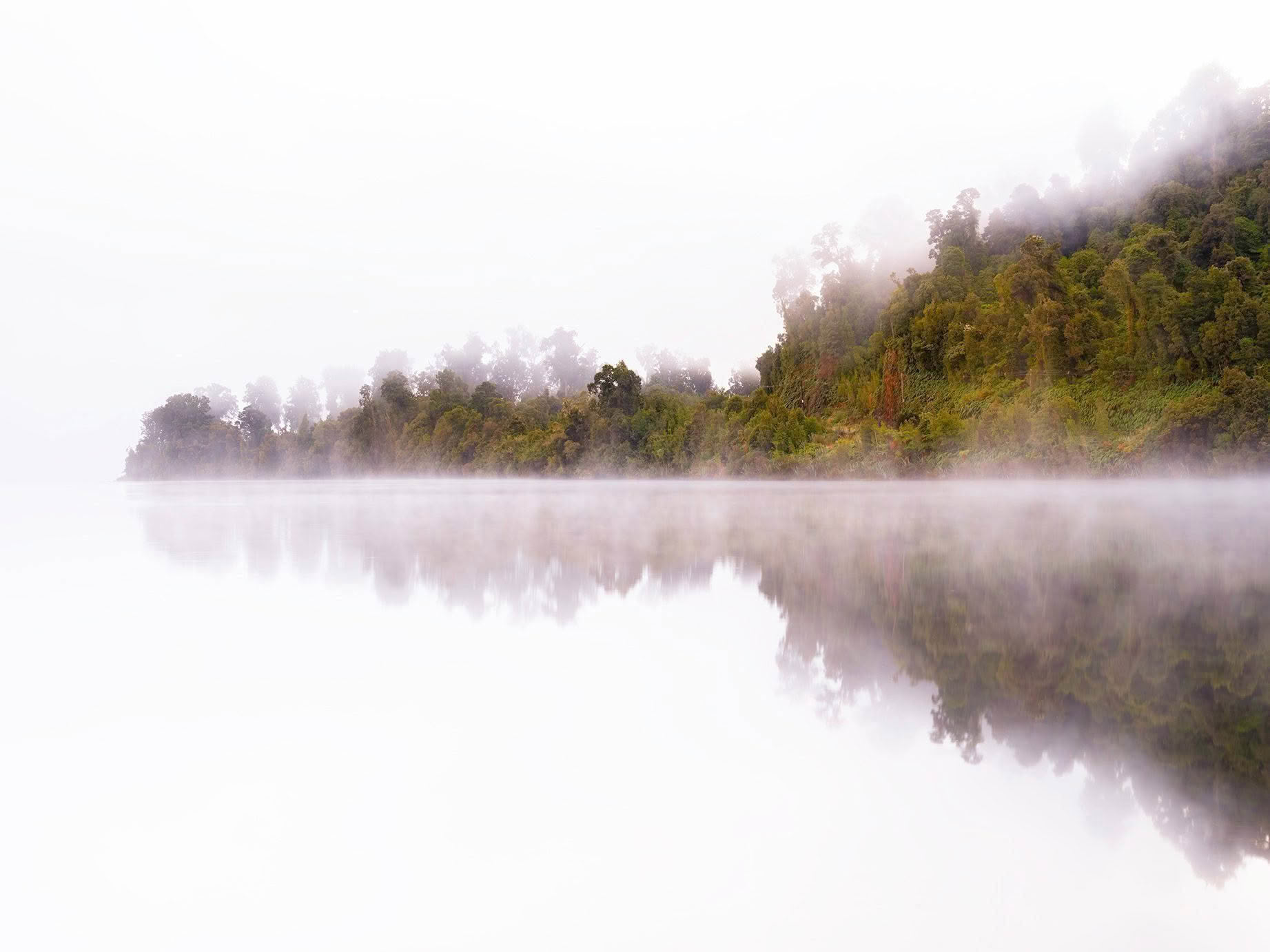 There is something quite special about Lake Mapourika when a low fog or mist descends over its surface. This photograph, taken early in the morning, captures the delicate mist as it gently wraps itself around the forested headland. The quiet beauty of this moment is something that I will always remember—a simple, peaceful scene that perfectly reflects the calmness of this stunning place.