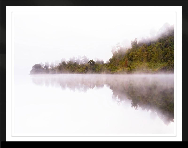 Mapourika Mist – mist rolling in over Lake Mapourika, West Coast, New Zealand. Fine art landscape photograph by Richard Hume
